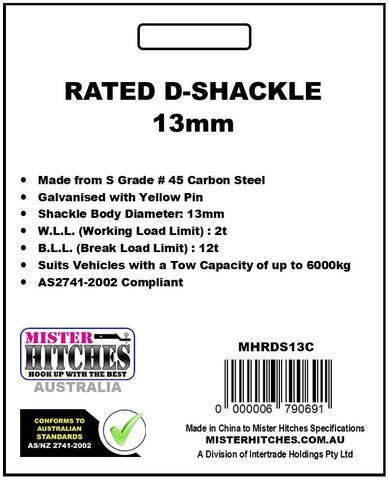 D SHACKLE STAMPED AND RATED 13MM 2T (CARDED)